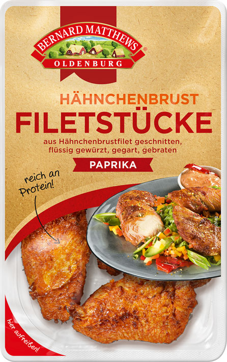Mit unseren Hähnchenbrust-Filetstücken in der Sorte Paprika erhalten Sie einen idealen Bestandteil für Ihren Wrap oder Salat. Außerdem können Sie unsere Hähnchenbrust-Filetstücke auch als Beilage zu Reis oder Pommes genießen. Die einfache und schnelle Zubereitung in der Pfanne oder Mikrowelle machen unsere Filetstücke zum idealen Produkt wenn es schnell gehen soll. Sie können unsere fettarmen und dabei proteinreichen Filetstücke aber auch als Snack genießen.